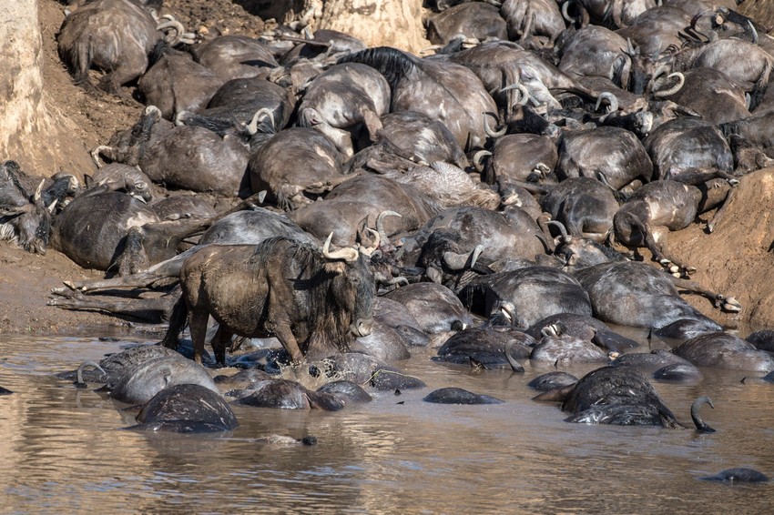 Jedan usamljeni gnu koji je preživeo prelazak reke Mare u Africi, nakon što je ona ubila stotine njegovih rođaka, naišao je na novu opasnost, piše "Dejli mejl".