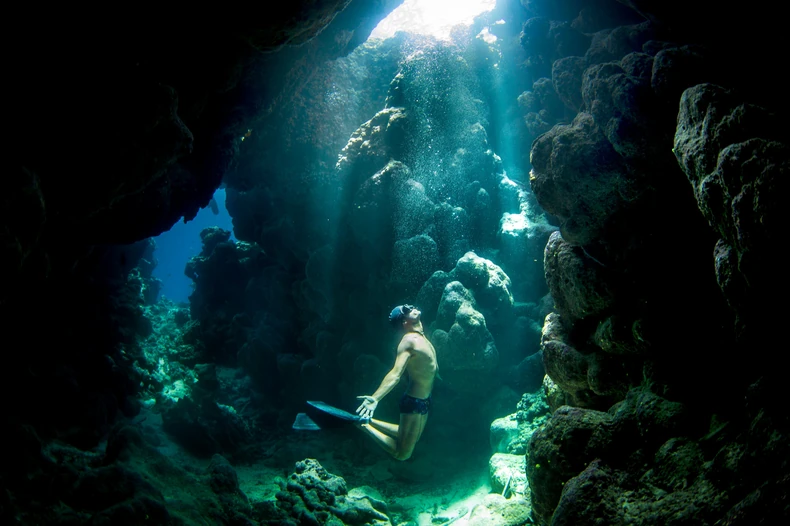 Ronilac Iram Zerki spustio se na dno mora u blizini ostrva Tahiti i to bez boce sa kiseonikom, a ovaj zanimljiv poduhvat zabeležio je fotoaparatom Ben Tauard.