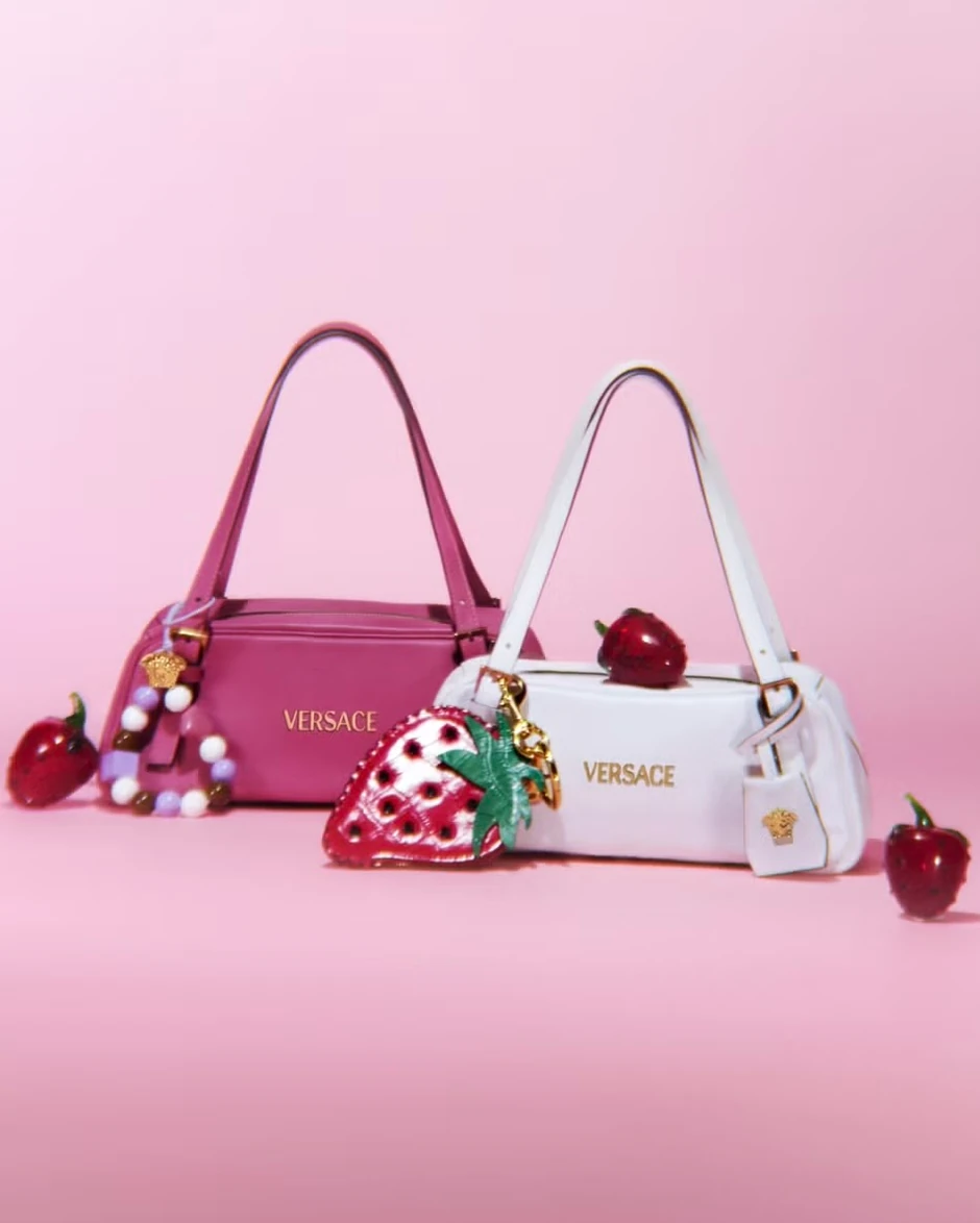 Nova kolekcija Tag Bag uključuje tri različita oblika torbi od kojih je najpopularnija bowling torba s horizontalnom orijentacijom. Ovaj oblik odražava aktuelne trendove u dizajnu torbi i savršen je za sezonu prazničnih partyja. Međutim, ono što “Tag bag” razlikuje od ostatka kitnjastih tašni iz Versace kolekcije je što sami možete da birate kojim privescima ćete je ukrasiti. Da li će to biti krzneni akcenti u K-pop stilu, lakovane voćkice ili raznobojne perle?