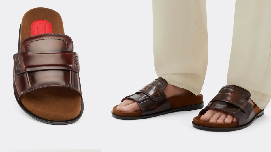 Da, u drskom zaokretu kad je reč o „dostupnosti“, Ferrari — majstor urlajućih motora, karbonskih fantazija i italijanskog ega na točkovima — zakoračio je u visooktanski svet… letnjih papuča. Napravljene od smeđe kože i brušenog antilopa, sa crvenom kožnom postavom i legendarnim logotipom konjića koji poskakuje, ove mokasinke bez leđa predstavljene su kao svojevrsna ulazna droga u Ferrari stil života. Maranelo metadon, ako hoćete.