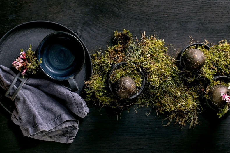 Kada je cveće u pitanju, asimetrija je nova simetrija. Zaboravite zbijene bukete lala i prenapadne aranžmane. Ovogodišnje uskršnje cveće je divlje i romantično. Zamislite grančice iz šetnje, ranunkule u tonovima sorbeta i anemone s crnim središtem. Dozvolite stabljikama da se prirodno savijaju u ručno rađenim vazama. Bonus poeni za umetničke dodatke—artičoke, začinsko bilje ili voće u dubokim činijama koje izgledaju kao da Vermeer upoznaje farm-to-table filozofiju.