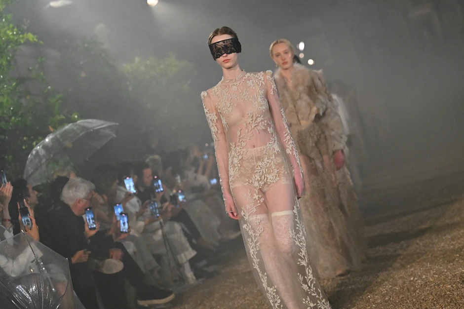 I pre nego što je sama revija počela — s modelima u venecijanskim maskama i čipkastim kreacijama koje su izgledale kao da su izašle iz Eyes Wide Shut, paradirajući u sumrak kroz centralni vrt vile prepun antičkih skulptura — večeri nije manjkalo intrige. Chiuri je rođena i započela karijeru u Rimu, a duboko lična priroda revije, koja je bila strastveno ljubavno pismo njenom rodnom gradu, dodatno je podgrejala dugogodišnje glasine da je ovo bio pažljivo osmišljen izlazak iz kuće.