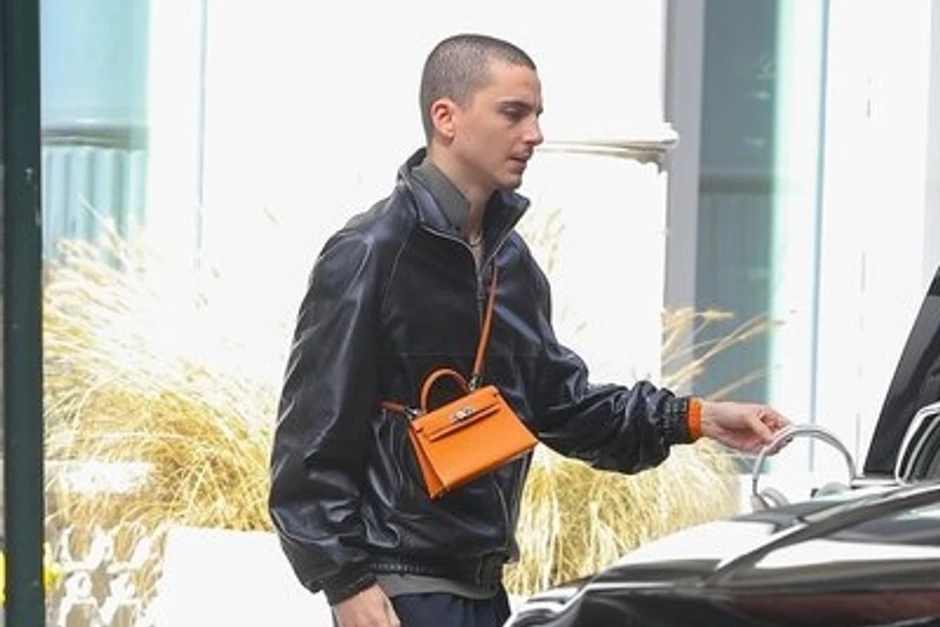 Primećen dok je izlazio iz poslovne zgrade na Menhetnu, Chalamet je izgledao besprekorno u klasičnoj crnoj kožnoj jakni. Ali, kao i uvek kod njega, detalji su govorili najglasnije. U ruci — upečatljiva narandžasta Hermès Mini Kelly torbica, statusni simbol čija cena dostiže oko 10.000 dolara. Na zglobu — luksuzni Chopard sat, sa narandžastim kaišem u savršenoj harmoniji s torbom. Namerno usklađeno, promišljeno i besprekorno izvedeno — spoj preciznosti i razigranosti koji je postao njegov zaštitni znak.