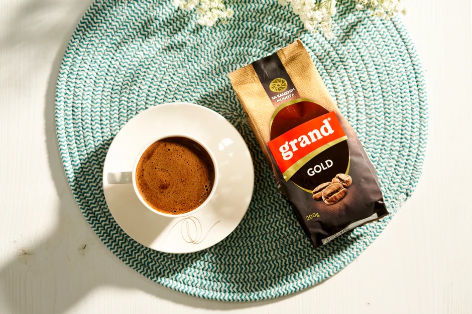 Postoje neke stvari koje nikada ne izlaze iz mode. Koje su klasika. Koje naša tradicija, ritual, nešto bez čega ne možemo da zamislimo svoj dan. Grand Gold kafa je godinama sinonim za kafu na ovim prostorima. Ova braon kesica je mnogima ultimativna zona komfora, stvorena za uživanje u porodičnim ritualima i kreiranje novih zajedničkih uspomena sa najmilijima. Napravljena od pažljivo odabranih, srednje uprženih zrna kafe, i dalje oduševljava svojim prepoznatljivim ukusom i mirisom. Zahvaljujući tradicionalnom načinu mlevenja na kamenim mlinovima, oslobađaju se eterična ulja koja joj daju punoću ukusa, bogatu teksturu i penu i intenzivnu aromu, baš onako kako volite.