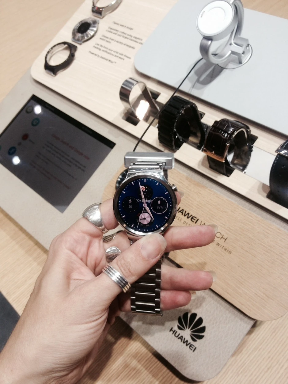 Ima kružni AMOLED ekran osetljiv na dodir dijagonale 1,4 inča, okvir od nerđajućeg čelika i 6-Axis senzor pokreta. Ekran sata ima rezoluciju od 400x400 piksela i 286 dpi, sa kontrastom boja od 10.000:1. Prodaja počinje 17. septembra.
