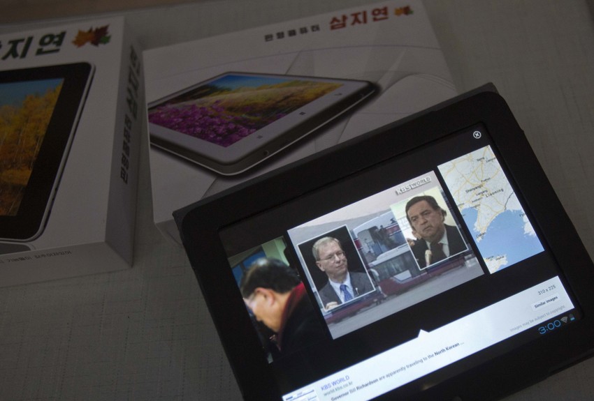 Erik Šmit, direktor kompanije Gugl posetio je glavni grad Severne Koreje i Univerzitet Kim Il Sung gde je fotografisao studente koji koriste stare računare.