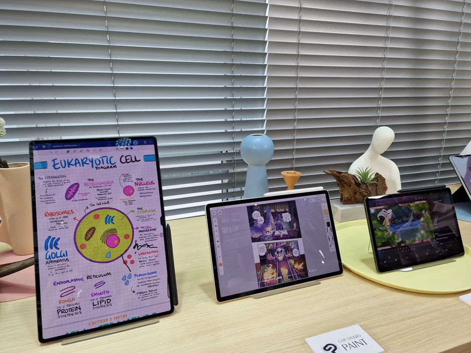 Nova serija tableta ima 20% veće četvorostruke zvučnike AKG sistema i Dolby Atmos. Pri tome, može da se odabere podešavanja i zvuka za igre, slušanje muzike, video pozive i drugo. Dodatak je ii inovativna Vision Booster tehnologija. Ona automatski registruje uslove jakog svetla i u skladu s tim prilagođava ekran. Tu je i pametna futrola koja stoji samostalno i prilagođava uređaj vertikalnom ili horizontalnom prikazu za gledanje bez korišćenja ruku.