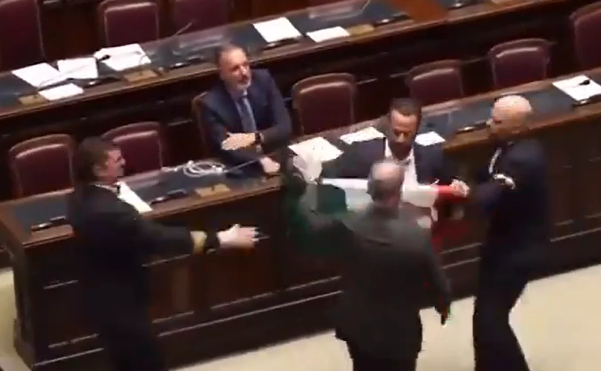 HAOS U ITALIJANSKOM PARLAMENTU Poslanici se svađali i tukli, jednog od njih izveli u kolicima (VIDEO) 13.06.2024 3