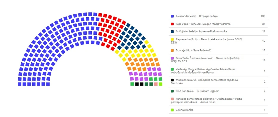 Ovako izgleda raspodela poslaničkih mandata prema dosadašnjih obrađenih 99,82 biračkih mesta