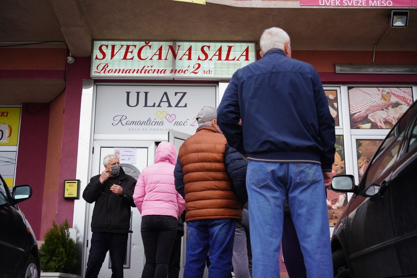 U prolazu čujemo tiho šaputanje građana koji čekaju u redu. Kažu da bi uz muziku možda i zaboravili zašto se tu nalaze, te bi cela situacija poprimila utisak neke nesvakidašnje svadbe.