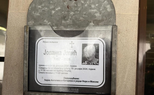 EMOTIVNE SCENE ISPRED ZGRADE GDE JE ŽIVELA JOVANKA JOLIĆ Na ulaznim vratima umrlica i zalepljena poruka, ćerka kroz suze: "Teško je" (VIDEO)