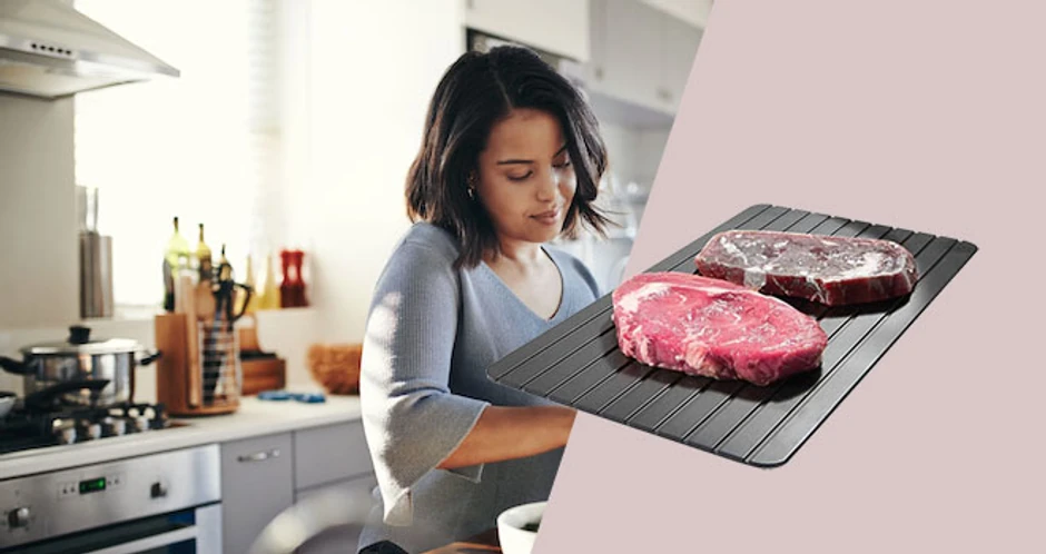 Priprema mesa više ne zahteva višednevno planiranje! Aluminijumska ploča za odmrzavanje hrane za najviše pola sata odmrzava hranu iz zamrzivača bez struje, vode ili baterije! Ne odmrzava samo meso i povrće, već i drugu hranu poput pomfrita, peciva ili smrznutog voća, a može biti vaša za samo 999 dinara na gruppi.rs.