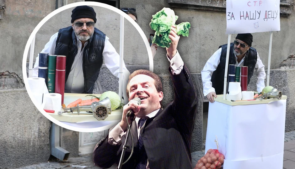 Improvizovani štand a na njemu kupus, krompir, šargarepa, toalet papir... Sve to danas je u Kosovskoj ulici građanima delio glumac i bivši predsednik Pokreta slobodnih građana (PSG) Sergej Trifunović.