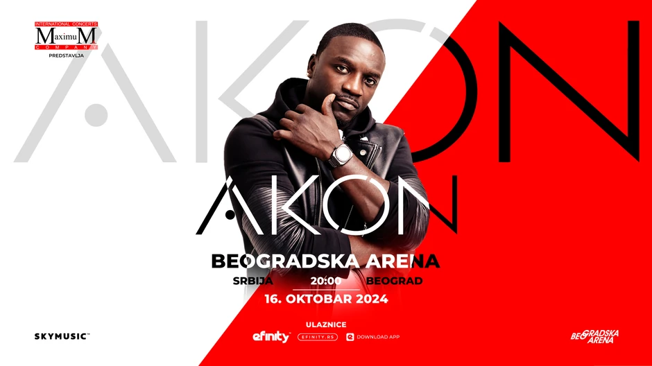 Međunarodna koncertna kompanija MaximuM i Skymusic predstavljaju solo nastup međunarodne superzvezde, legende hip-hop i R&B muzike, AKON-a, koji će održati svoj koncert 16. oktobra 2024. godine u 20 časova u Beogradskoj Areni. Ovo je njegov prvi koncert ikada u Srbiji i na Balkanu.