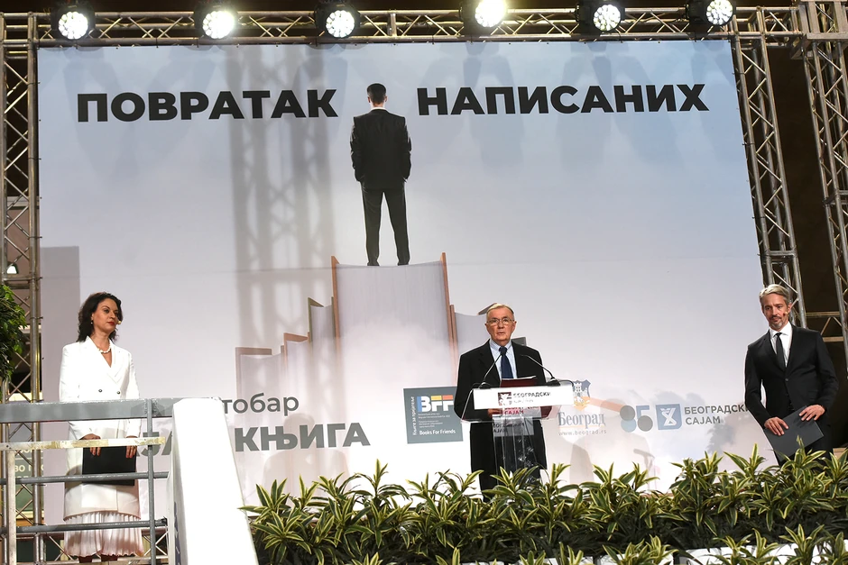 - Moleći Boga za mir uz prizivanje razuma i pameti za generacije koje danas uče da čitaju, poželeo bih da se vidimo sledeće godine, uz pozdrav naslova jedne davne knjige: 'Doviđenja u oktobru - zaključio je Kovačević.