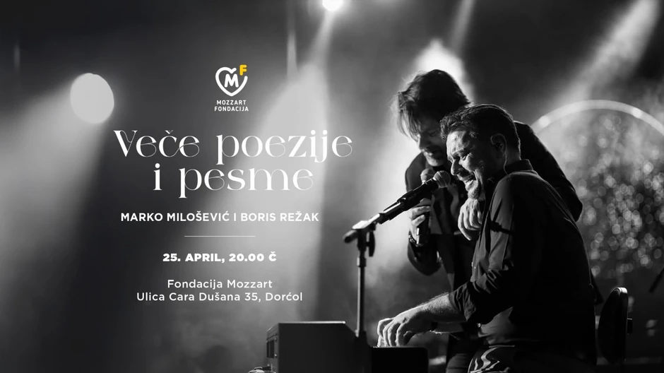 Osvojili su srca publike širom regiona, a sada spremaju još jedan spektakl. Posle 200 zajedničkih nastupa za manje od dve godine, pesnik Marko Milošević i kantautor Boris Režak izvešće jedinstveni spoj muzike i poezije i u Fondaciji Mozzart (Cara Dušana 35, Dorćol), u petak 25. aprila od 20 časova.