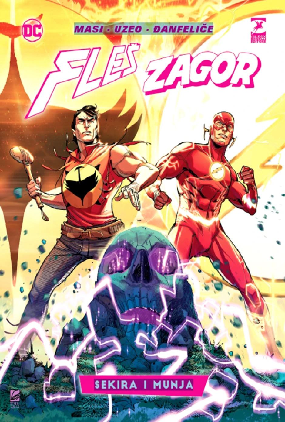 Saradnju eminentnih izdavačkih kuća DC komiks i Boneli. Sudar dva univerzuma. Zahvaljujući “Čarobnoj knjizi”, u prodaji u Srbiji se našao ovaj neverovatan krosover. Pod nazivom Sekira i munja. Jasno je, jeli, i otkud takav naslov. Kada se vide simboli po kojima se prepoznaju Zagor i Fleš, ništa drugo ne bi ni bilo efektno.