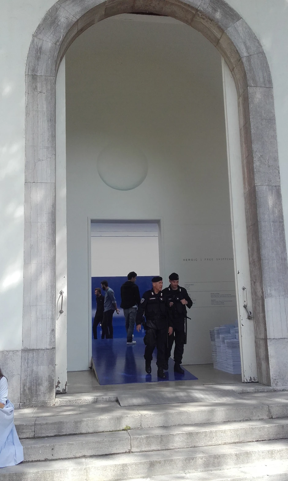 Kako se dalje naglašava u saopštenju "na teren su izašli vatrogasci, predstavnici Direkcije Bijenala kao i Direkcije za zaštitu spomenika Republike Italije, a konstatovano je da spomenik kulture nije ugrožen, i odmah je urađen zapisnik i prijava štete osiguranju, za odštetu, koju će pokriti osiguranje tj. italijanska firma, izvođač radova"