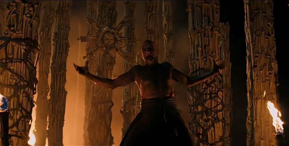 Ralf Fajns prikazuje upečatljivu scenu dok pleše među kostima uz Iron Maidenovu muziku u filmu '28 godina kasnije: Hram kostiju'.