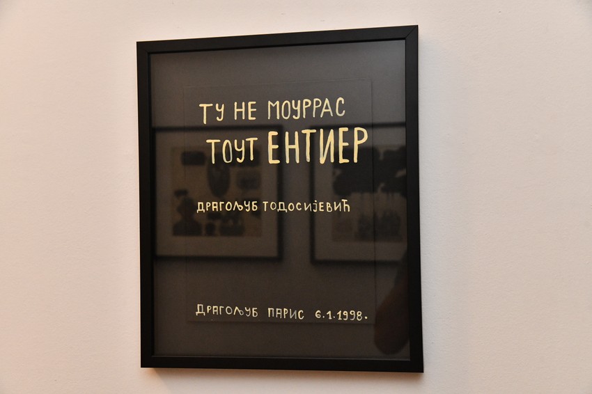 - Kada sam završio seriju velikih instalacija, tog prelomnog trenutka, kada je umrla gđa Olga Jevrić kod koje sam stanovao na Starom sajmištu, mene su oterali iz te zgrade sa idejom da će da naprave memorijalni centar. Ostao sam bez ateljea, za jednim stolom koji sam morao da delim sa suprugom Marinelom. Nedelju dana sam ja bio zastupnik za stolom, druge nedelje ona. Ali sam korak po korak počeo da pravim akvarele. Dragan Stojanovski iz "Srboštampe" doneo mi je gomilu kvalitetnog papira, finog francuskog. Počeo sam da radim akvarele, video da se boje ne razlivaju, da su postojane. Neki akvareli decenijama stoje kao i prvog dana kad su nastali. Tada je nastala ogromna serija akvarela i muzej u Novom Sadu, tačnije Sanja Kojić Mladenov predložila je da se napravi retrospektivna izložba tih radova koja će putovati po Evropi. Gostovali smo od Banjaluke do Praga. To su bile tri velike retrospektive za godinu dana. I to je priča o akvarelima - rekao je Todosijević uz gromoglasan aplauz prisutnih.