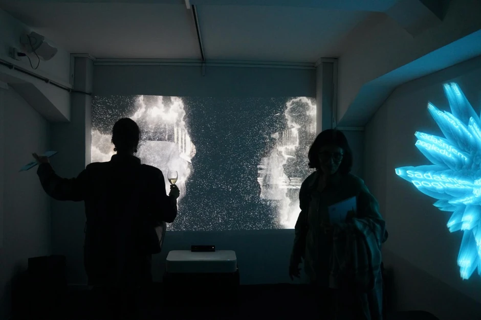 Umetnik Predrag Terzić, predstavljen radom "Svetlosni tok, izjavio je za Tanjug da izložbu čine različiti mediji uvezani kroz zvučne, audio - vizuelne i interaktivne instalacije, kao i nekoliko VR radova.