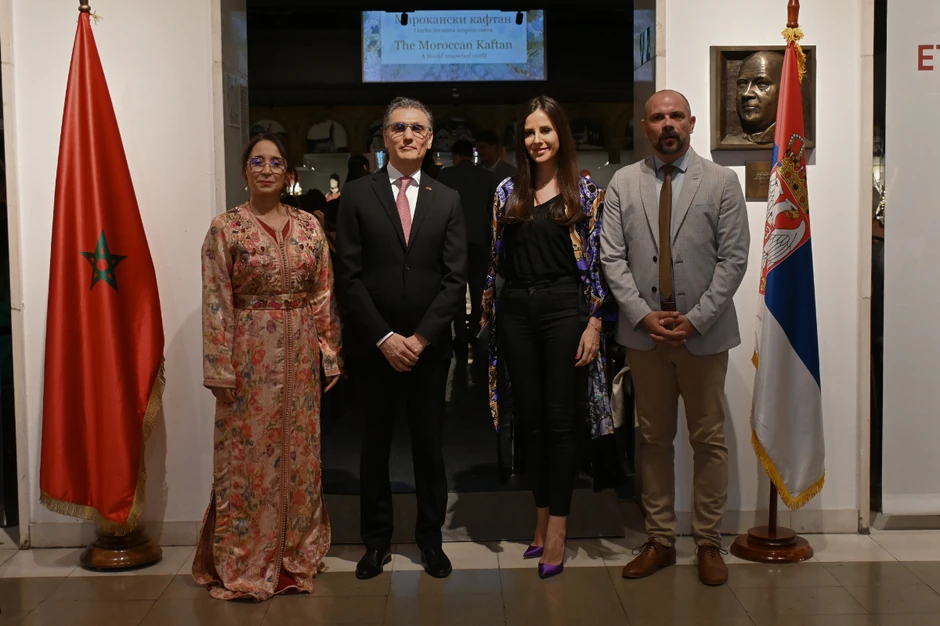 Presecanjem vrpce, Prva dama Srbije, gospođa Tamara Vučić, ambasador Kraljevine Maroka Mohamed Amin Belhaž i v.d. direktora Marko Krstić u Etnografskom muzeju sinoć su svečano otvorili izložbu "Marokanski kaftan - Odeća poznata širom sveta".