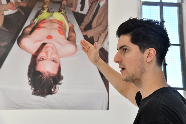 - Jeste, u pravu ste, na njoj ima najviše naive. Smislio sam sledeći narativ: roditelji usvajaju decu i sisaju njihovu životnu energiju i uvek žive duže koliko živi dete i non-stop je obnavljaju. I dečko koji sedi ispred njih i drži nož i viljušku je usvojen, a iza njih je obešeno prethodno dete. To je interesantna ideja za horor film. Imam ideje koje prenosim u slike i jednog dana preneću ih u film, kao Dejvid Linč što je radio.