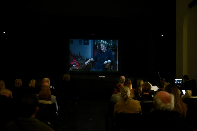 Kada su se svetla u sali pogasila, započela je reprodukcija delova jednog od intervjua velike književnice. Na licima prisutnih, provejavali su neverica i seta, dok je na platnu išao dobro poznat lik koji je govorio kao i što je pripovedao, jezgrovito, toplo i zavodljivo čitalačkoj publici.