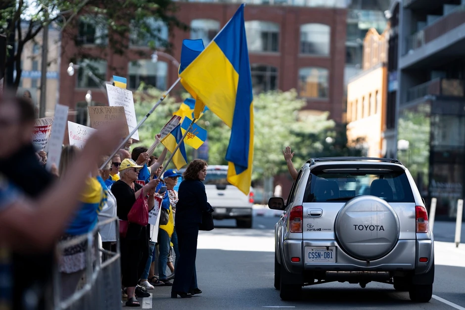 Ovog utorka oko 400 demonstranata okupilo se u Torontu kako bi protestovalo protiv prikazivanja filma koji je prozvan ruskom propagandom. Demonstranti su nosili natpise na kojima je pisalo "Russians at War opravdava ubice i silovatelje" i "Ruska propaganda ubija".