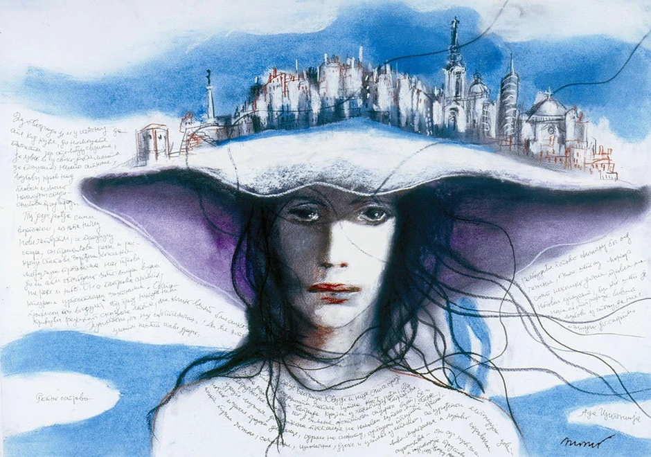 O svojim prvim iskustvima sa slikarskim materijalom poznati slikar i pisac je napisao u svojoj monografiji: “U aprilu 1941. dobio sam svoje prve boje i četku. U kući u kojoj sam tada živeo u Sarajevu, u ulici kralja Aleksandra br. 26, jednom sumornom zdanju podignutom za vreme Austrougarske, punom mraka i vlažnih senki, živela je na drugom spratu penzionisana učiteljica, gospođica Sara Semiz, u sobama zastrtim tepisima i serdžadama sa peškunima i starinskim nameštajem. Da me uteši što sam izgubio majku u bombardovanju i što mi je otac ko zna gde u ratu, uzela me je za ruku i odvela u knjižaru “Simon & Katan” u blizini Katedrale. Mogu da zamislim taj prizor hroma starica sa cvikerima, nalik na pticu, skakućući u hodu, vodi za ruku četvorogodišnjeg dečaka u knjižaru i papirnicu u kojoj se iz polutame svetlucaju “pelikanova” naliv-pera i četke, žuti snopovi “koh-i-nor” olovaka, tamo gde sve miriše na hartiju i mir, uprkos razaranjima koja traju. Za tezgom su još uvek dvojica starih Jevreja, koje nisu odveli u logor. Liče na činovnike iz Dikensovih romana; ćelavi, sa cvikerima na kukastim nosevima i sa crnim navlakama do lakata preko rukava košuje. Oni mi pružaju limenu kutiju u kojoj, kad se poklopac otvori, leže akvareli, dvanaest njih u metalnim čančićima. Naročito me privlači jarko crvena-cinober, i kao sunce žuta-kadmijum. Zatim mi daju predivnu četku crne lakirane drške, kakvu posle nikad nisam držao u ruci; njenim vrhom moguće je izvesti liniju tanku kao dlaka, a i da se jednim potezom hartija prekrije širokom, šumnom obojenom površinom. Dobijam, takođe, i blok belog akvarel papira.”