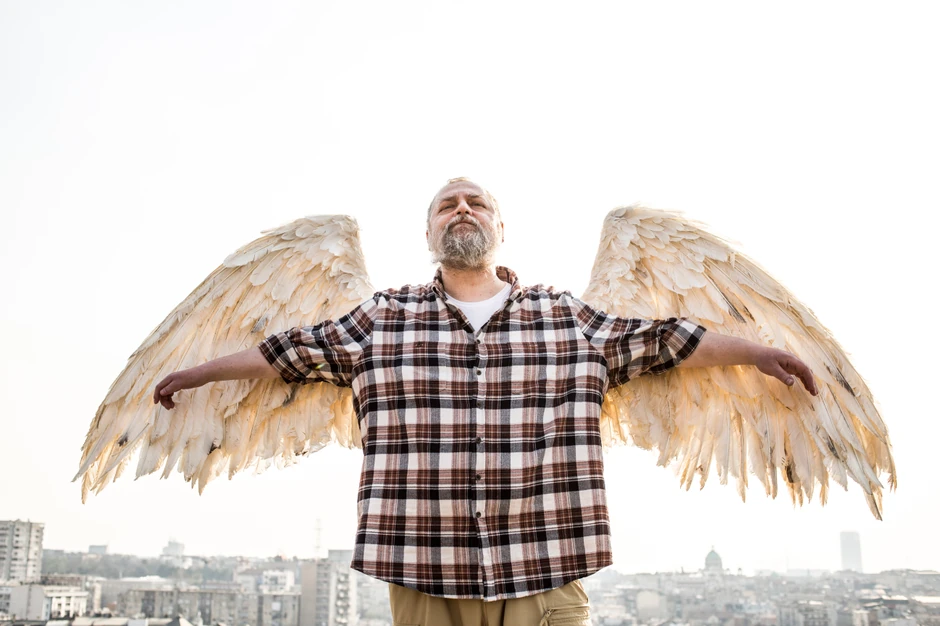 Nikola Pejaković u komediji “Ala je lep ovaj svet” Filipa Čolovića, čija premijera je zakazana za 22. septembar u MTS Dvorani, tumači propalog anđela Ljubišu.