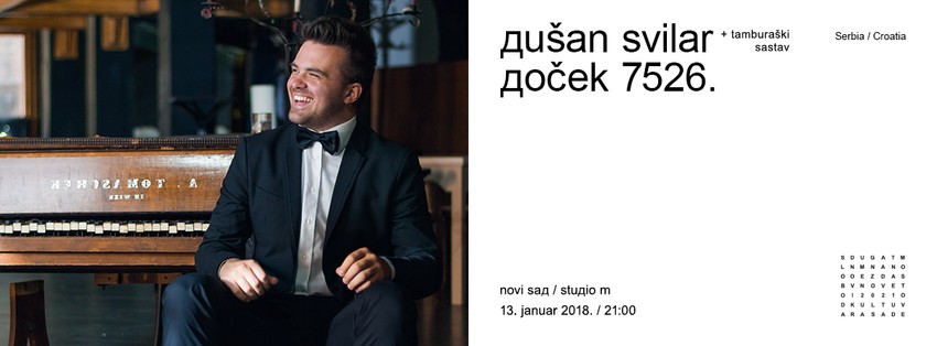 Dušan Svilar pevaće za dušu, uz pratnju maestralnih tamburaških orkestara Osijeka i Novog Sada. Ovo je jedinstvena prilika za posetioce da dođu u Studio M i čuju najpozantije tamburaške pesme koje će izmamiti osmehe i podstaći nas da zapevamo zajedno. Dušan Svilar je završio muzičku akademiju kao jedan od najtalentovanijih tenora sa ovih prostora u poslednjih 20 godina. On je školovani operski pevač koji se dokazao kao scenski umetnik u pozorišnim predstavama i mnogim takmičenjima. Reference Dušana Svilara garantuju dobar provod za sve koji se opredele da veče 13. januara od 21 čas provedu u Studiju M, a preostala je ograničena količina karata po promotivnoj ceni od 500 dinara.