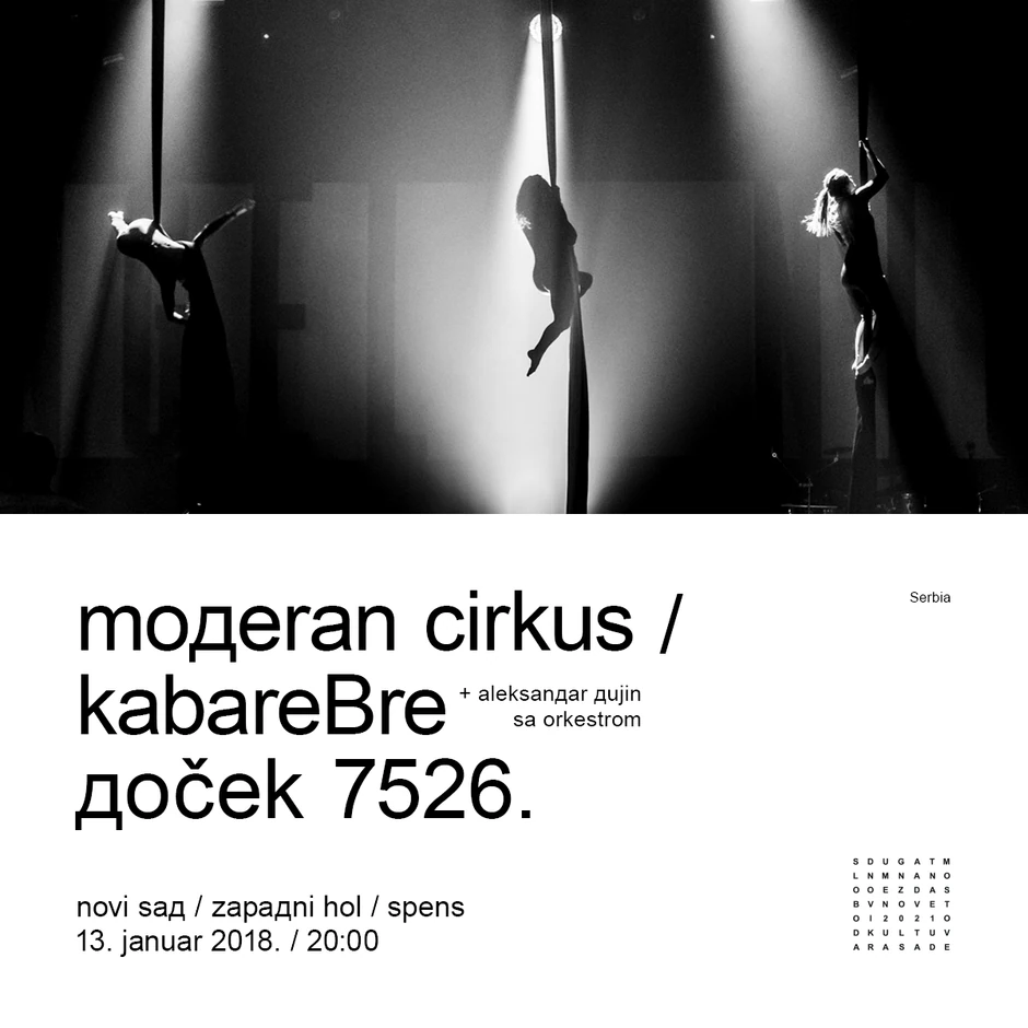 U subotu, 13. januara u 20 časova u sklopu Dočeka 7526. godine u Zapadnom holu Spensa prvi put u Novom Sadu predstaviće se Kabare Bre sa profesorom Aleksandrom Dujinim u pratnji benda, koji pruža mogućnost da Novu godinu dočekate uz nešto potpuno drugačije - vazdušne i akrobacije na parteru, akrobatsku spravu "cyrweel", žongliranje, komediju, ples...