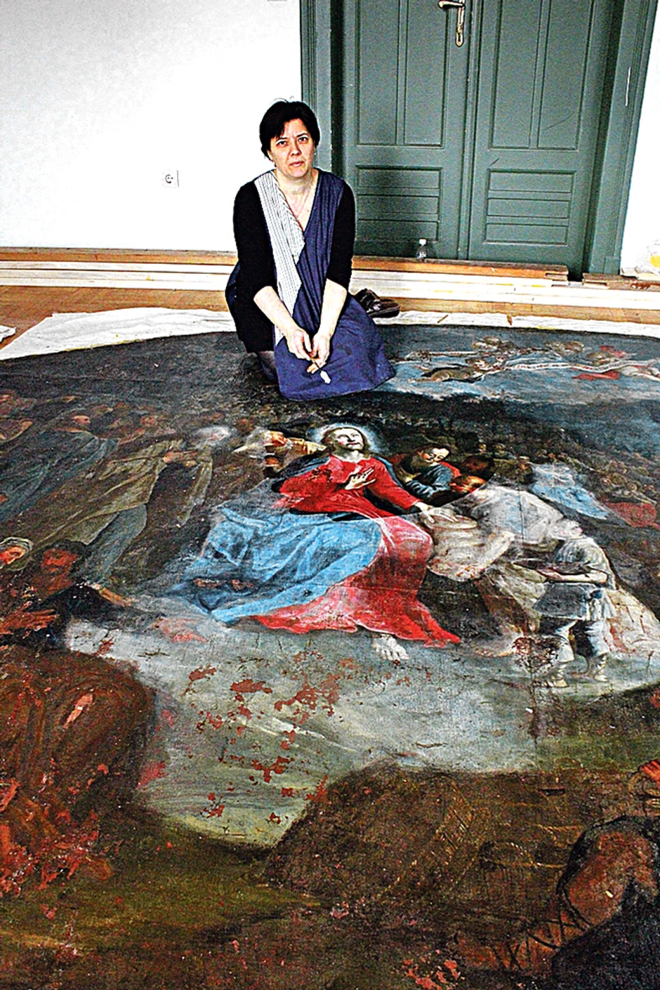 - Recimo, postoji rupa, a sa prednje strane zakrpa na kojoj je preslikan detalj. Dok to skidam našla sam i škrabotine đaka, deca su pisala po njoj. Planiram da do aprila sliku dovedem do stanja da je možemo izložiti i onda ću posao nastaviti uživo – kaže restauratorka.