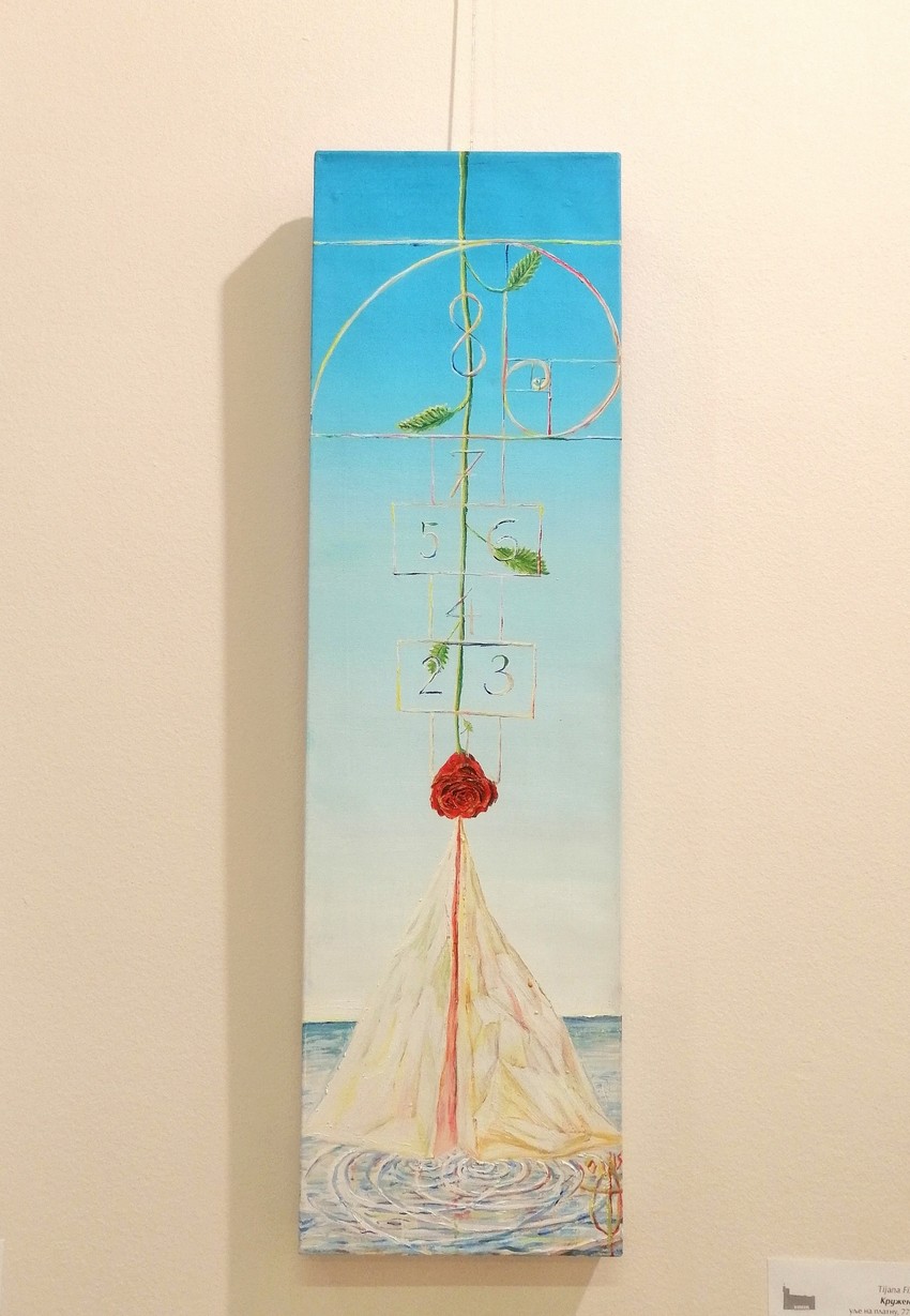 - Da, taj ciklus sam predstavila 2009. u Galeriji ULUS. Zanimljivo je na koji način vidim život, jer imam utisak da se celog života krećem unazad. Obično čovek stremi ka nečem i ide u tom pravcu, a mene je sve stizalo kao posledica, da bih na kraju shvatila šta je uzrok. "Arhitektonika neba" je prikaz života ljudi, koji imaju neki odnos prema pojavama, ljudima, stvarima. I sve to može da se transponuje na nebo, čistu površinu, i to je arhitektonika neba, ono što svakome pripada. A ovo je moja verzija.