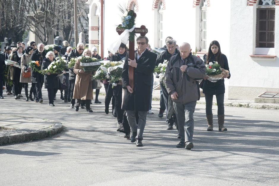 Tišinu su na mahove parale reči što su ih ljudi međusobno, u pola glasa, govorili o njemu, njegovom delu, ljudskoj umetničkoj veličini, momentima iz presnog života… Opelo je služio vladika Ilarion, (nekadašnji glumac Rastko Lupulović), koji je nad kovčegom, između ostalog, kazao da je njegov sjajni književni opus otadžbina koju svi razumeju.