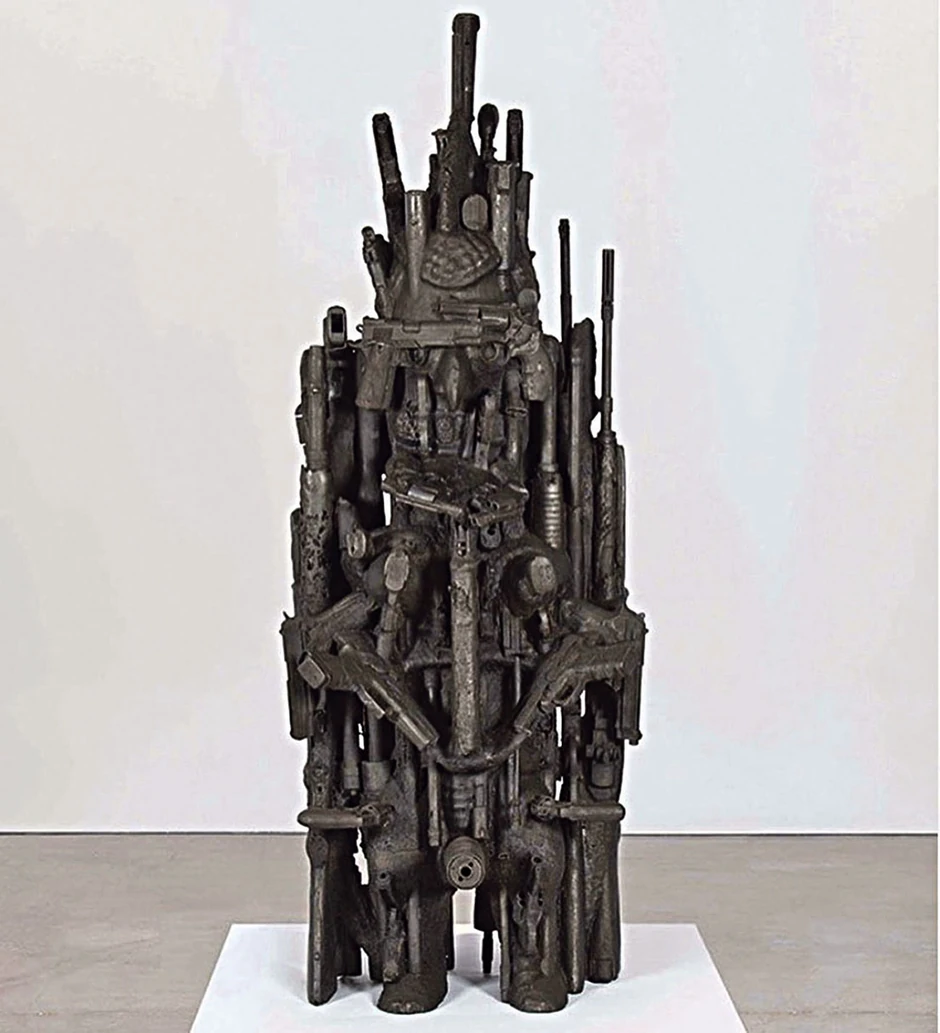 Kuns je još objasnio da je za pravljenje skultpure koristio metal od kojeg je oružje načinjeno. Na rasploganju je imao 62 komada oružja i svu prateću opremu iz Penove kolekcije. Američki umetnik je, kako navodi Artnet, na ovaj način istovremeno iskoristio vatreno oružje i deaktivirao ga.