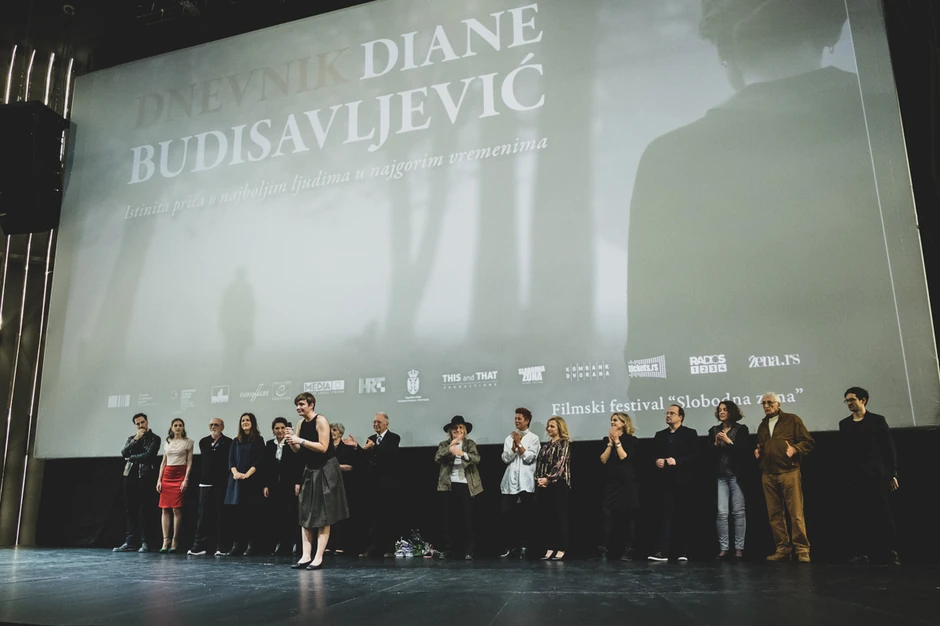 "Dnevnik Diane Budisavljević" premijerno je prikazan sinoć na tri raspodate projekcije na festivalu Slobodna zona. Ekipa filma predvođena rediteljkom Danom Budisavljević pozdravljena je ovacijama. Publici su se poklonili rediteljka, producenti i ekipa filma uz naše glumce Mirjanu Karanović i Tihomira Stanića, kao i svedoci ovih događaja Živko Zelenbrz, Nada Vlaisavljević i Milorad Jandrić.