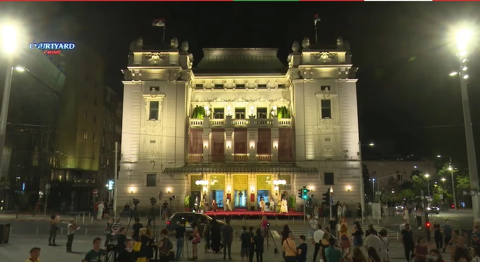Umetnici Narodnog pozorišta u Beogradu, u čast ponovnog susreta s publikom posle šest meseci, priredili su neobičan umetnički događaj, "Ponovo zajedno", ispred nacionalnog teatra.