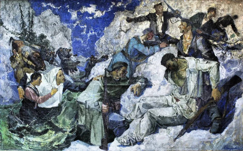Iako sam nije nikada bio na Sutjesci, Todorović je slikao na osnovu svedočanstva učesnika bitke.