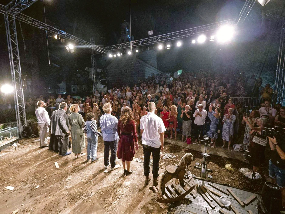 Toplo veče 22. avgusta. Kao da se dnevna jara prelila i u noć. Između crkava, kraj budvanske Citadele, prostoru koji je upriličen u scenski, tribinski deo za publiku od preko 200 mesta doslovce krcat. Gledaoci su i na okolnim, kako ih zovu, zidićima.