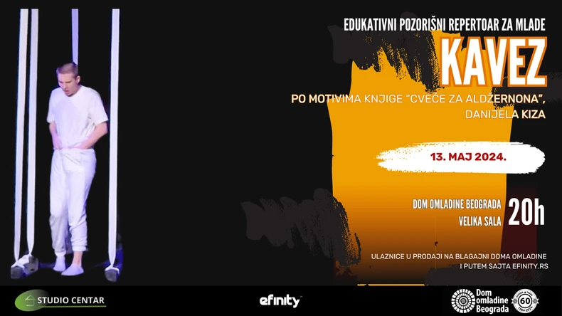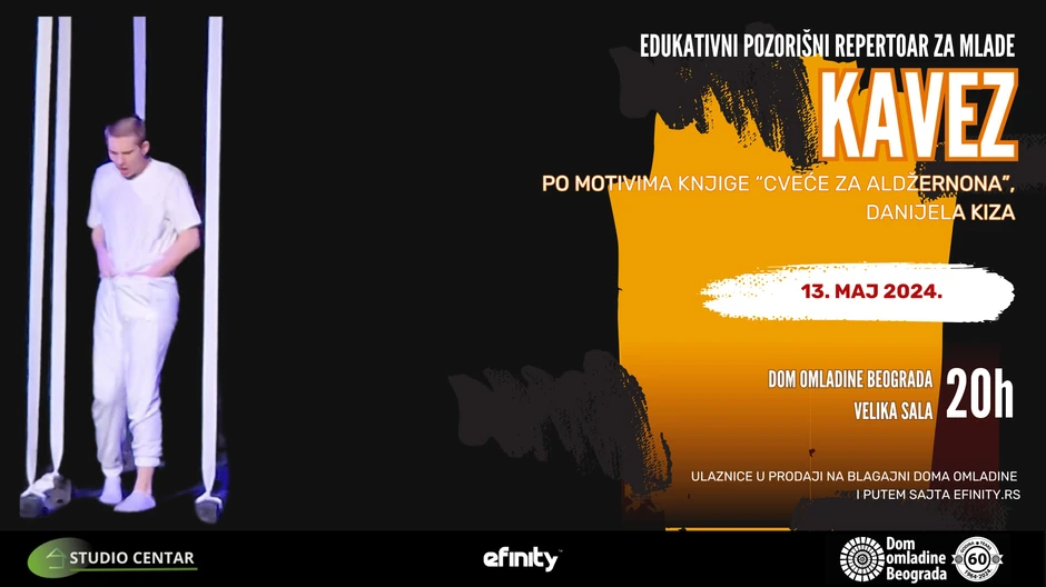 "Kavez" je predstava rađena po motivima jednog od najpoznatijih romana iz zlatnog doba naučne fantastike "Cveće za Aldžernona", ovenčanim nagradama Hugo i Nebula.
