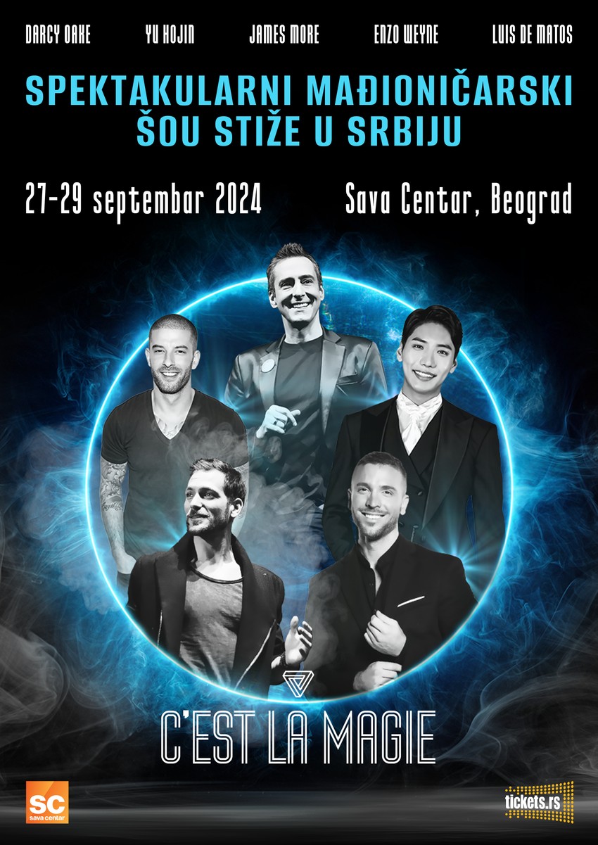 Ovog septembra, Sava centar će se transformisati u pozornicu čuda dok najprestižniji iluzionisti današnjice dolaze u Srbiju sa predstavom C’est la Magie, u okviru njihove Evropske turneje. Petorica svetski poznatih majstora iluzije – Luis de Matos, Darsi Ouk, Enco Veijn, Džejms Mor i Ju Ho-Džin – izvešće spektakl koji će po prvi put biti prikazan uživo pred publikom u našoj zemlji.