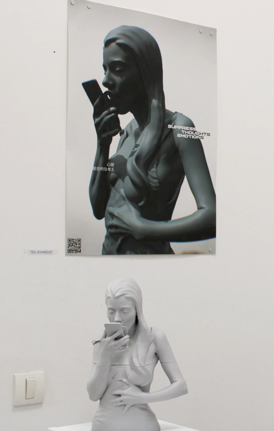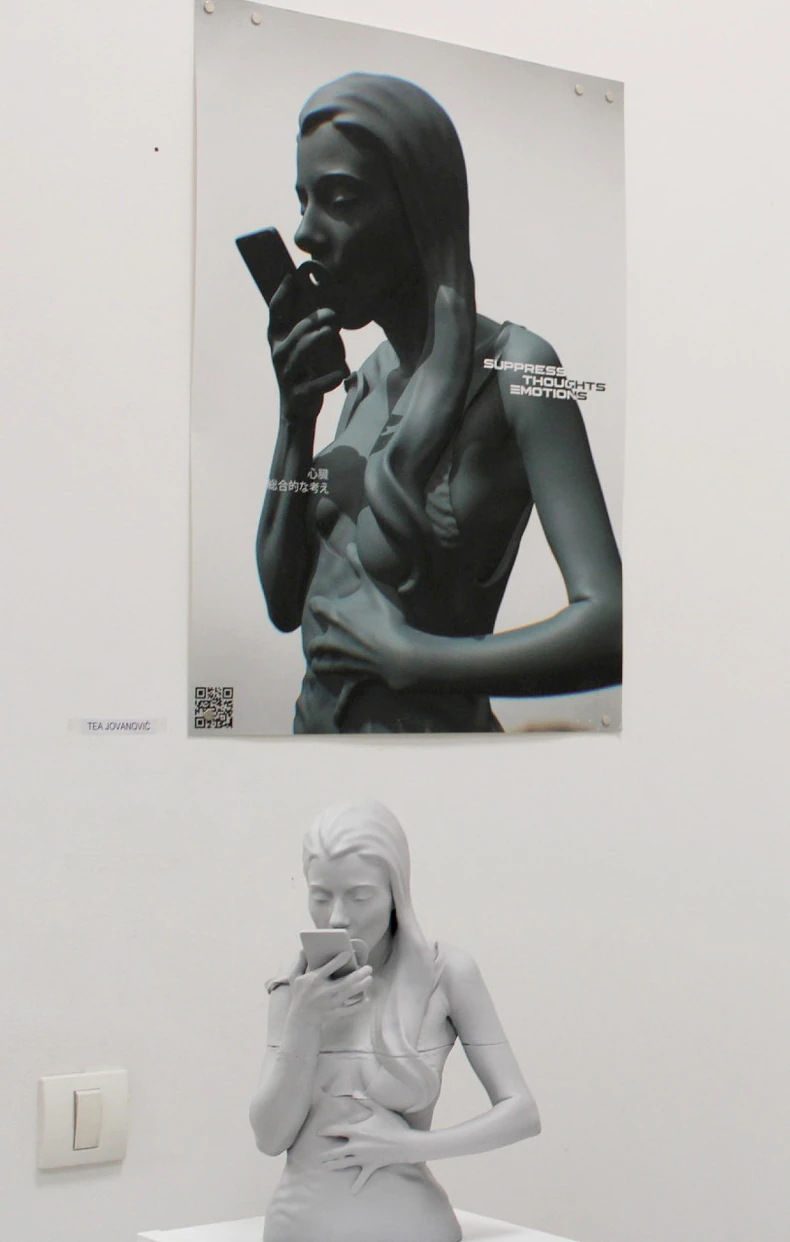 - Motiv fetusa, koji se kontinuirano ponavlja kroz moje crteže i eksperimente, simbol je tajne rađanja, kritike abortusa i želje za materinstvom. Strah koji se neminovno prepliće u doživljaju forme ne predstavljam kao dominantnu temu. On je u sloju ispod površine rada, uvek prisutan, ali ne i vidljiv, niti opipljiv, već kao suprotnost, negativ – kaže Jovana.