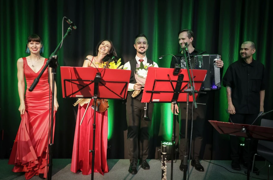 Za muzički program bila je zadužena sjajna petorka. Za klavirom je nastupila Marina Donets, čiji je precizni i emotivni ton posebnim muzičkim bojama obasjao scenu. Svetlana Tertus na violini utkala je u ovo muzičko putovanje nežnost i dramatičnost, dok je Vladimir Gagić na klarinetu dodao toplinu i bogatu boju celokupnom zvuku.