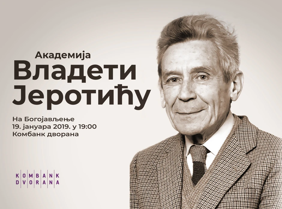 Svečana akademija posvećena akademiku Vladeti Jerotiću biće održana na Bogojavljenje 19. januara u 19 časova u Kombank dvorani u organizaciji "Agape produkcije", saopšteno je danas.