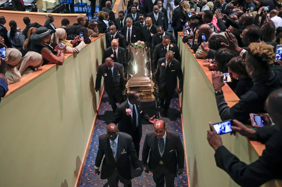 Areta je sahranjena u zlatnoj haljini i zlatnim cipelama, u tonu sa zlatnim kovčegom, saopštila je njena porodica, iako je dva dana pre toga ležala u otvorenom sanduku u crvenoj odeći, dok su joj obožavaoci odavali počast u Muzeju afričko-američke umetnosti "Čarls H. Rajt".