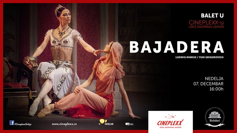 Snimak baleta „Bajadera“ iz Boljšoj teatra biće prikazan u bioskopu Cineplexx UŠĆE Shopping Center ove nedelje, 7. novembra sa početkom od 16 časova.