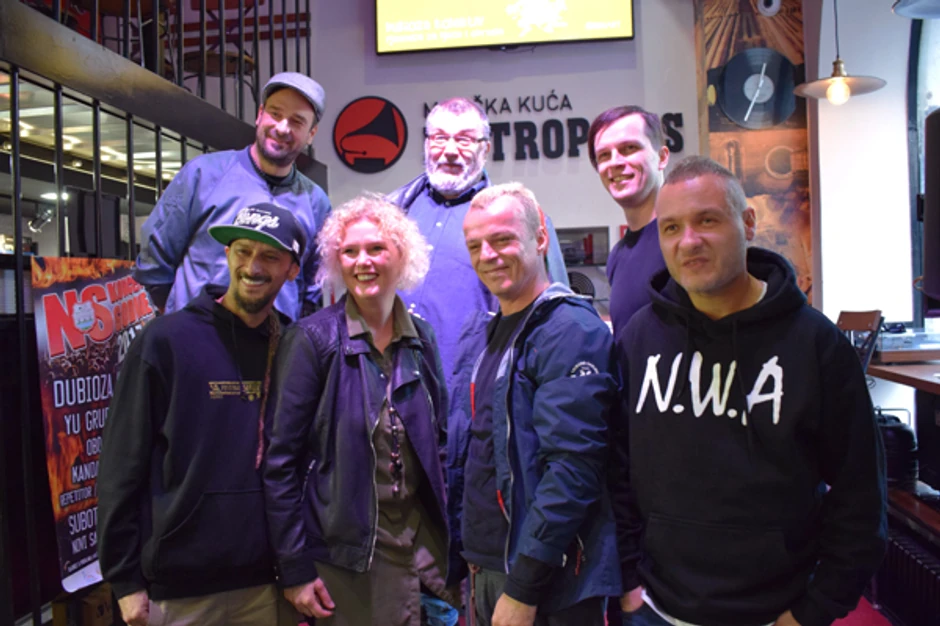 Članovi benda "Dubioza kolektiv" promovisali su juče u beogradu i Novom Sadu izlazak novog albuma "Pjesmice za djecu i odrasle" (Menart).