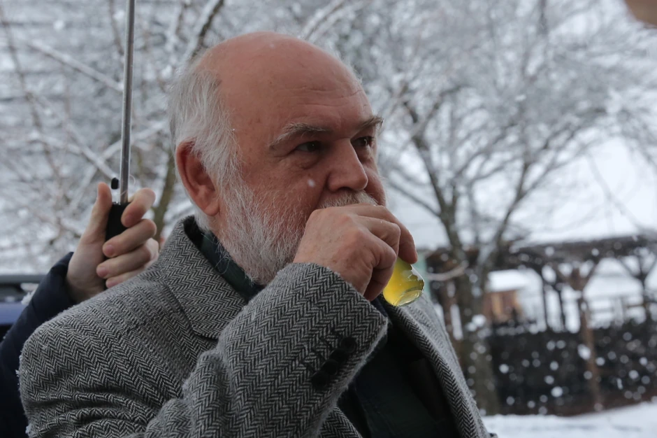 Legendarni srpski glumac Aleksandar Berček stigao je u nedelju nešto posle 14 časova na zavejani Mećavnik na festival Kustendorf.